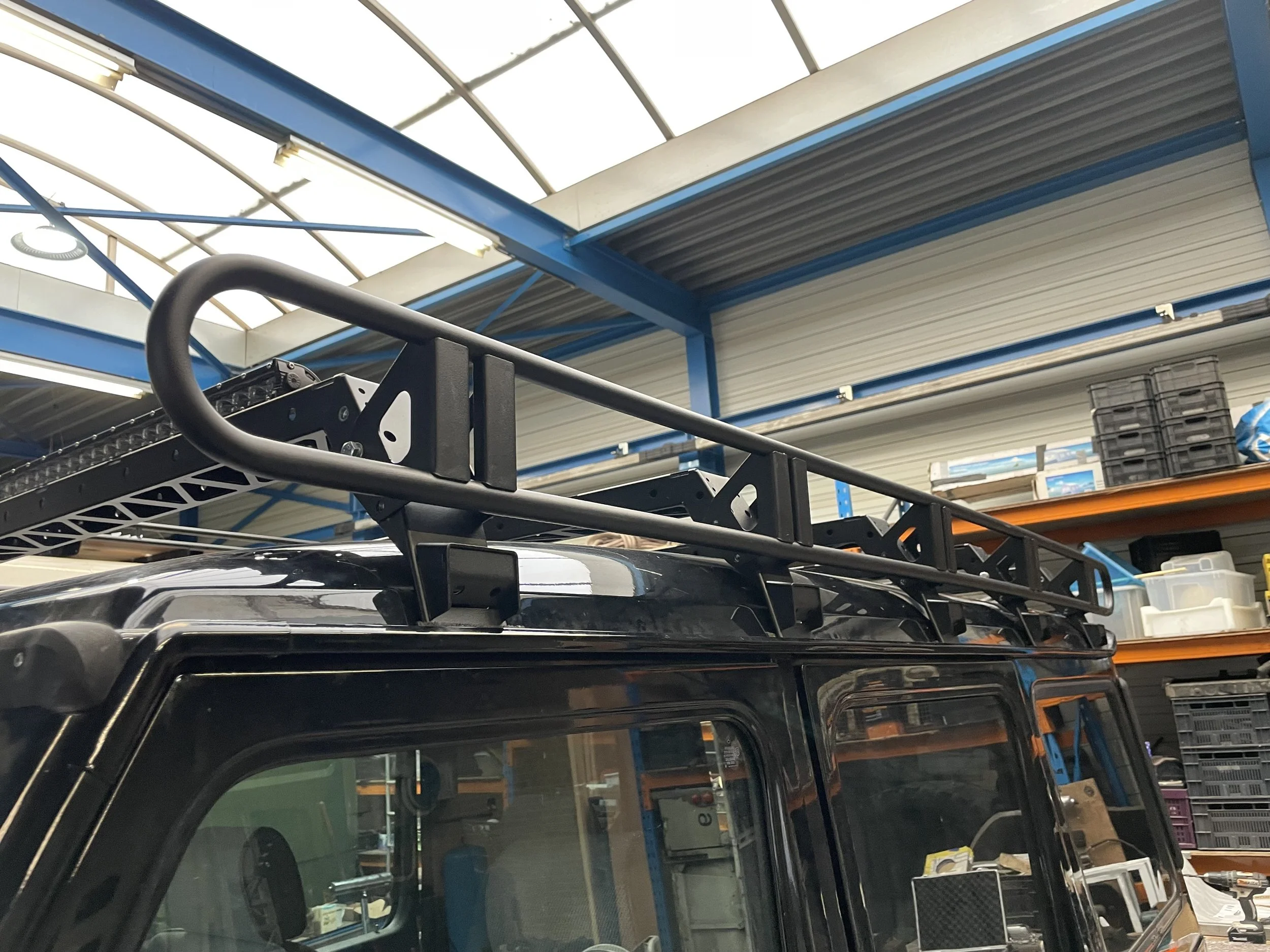 Het Mercedes G-Klasse dakrek met zijmontagemogelijkheid, voorzien van een Duplex-coating, biedt een uitzonderlijke combinatie van stijl en functionaliteit voor je avontuurlijke reizen. Dit robuuste dakrek is speciaal ontworpen voor de G-Klasse en biedt niet alleen extra bagageruimte, maar ook de mogelijkheid om zijmontageaccessoires, zoals off-road verlichting of brandstofcontainers, toe te voegen. De Duplex-coating zorgt voor duurzaamheid en bescherming tegen de elementen, terwijl het tijdloze ontwerp naadloos aansluit bij de esthetiek van je Mercedes G-Klasse. Met dit dakrek ben je klaar voor elke off-road expeditie met stijl en functionaliteit.